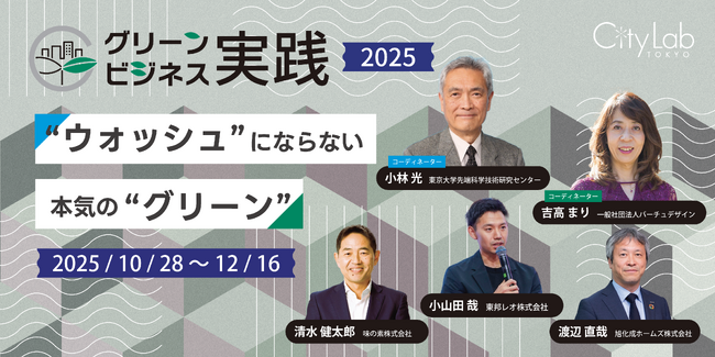 シティラボ東京(東京都中央区京橋、企画:東京建物株式会社、運営:一般社団法人アーバニスト)は、2025年10月28日より、全5コマ+ワークショップ形式のケーススタディからなる実践型の研修プログラム「グリーンビジネス実践2025~”ウォッシュ”にならない本気の”グリーン”」(以下「本プログラム」)を開講いたします。