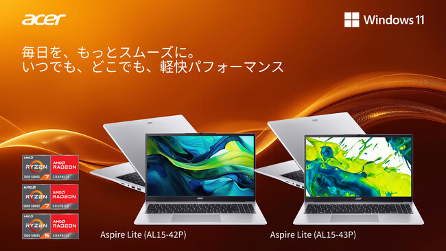 Aspireシリーズから AMD Ryzen(TM) プロセッサー搭載Aspire Lite ノートパソコン3機種発売!