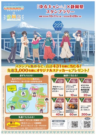 静岡県は、令和6年10月~令和7年2月に、TVアニメ『ゆるキャン△』とコラボレーションした県内全域を対象とするスタンプラリーを実施し、県内外から8,330人が参加しました。