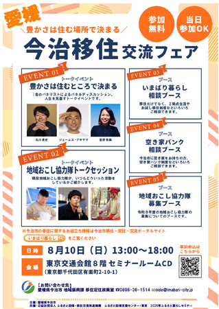 今治市が2025年8月10日(日)、東京・有楽町の東京交通会館にて『今治市移住交流フェア』を開催します。住まいや仕事、支援制度など移住に関するリアルな情報が得られるほか、地域おこし協力隊や専門家のトークイベントも実施。都市から地方への移住を考えている方に今治市の魅力を存分に伝えるイベントです。