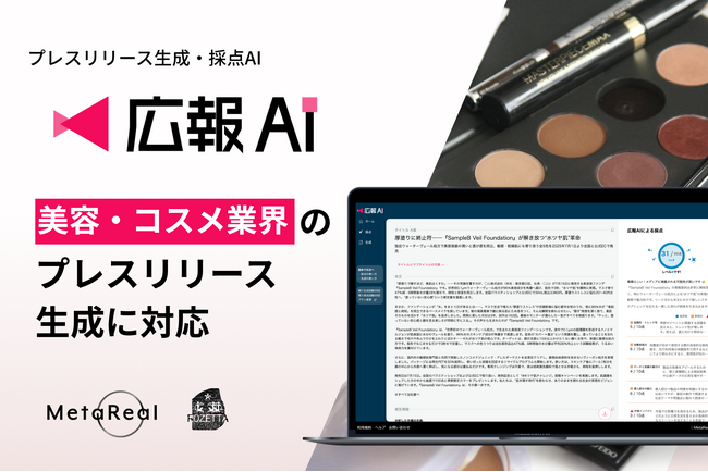 メタリアル・グループの株式会社ロゼッタ(本社:東京都千代田区、代表取締役:五石 順一)が提供する、メディアに掲載されやすいプレスリリースを生成・採点可能な『広報AI』が、美容・コスメ業界のプレスリリース作成に対応しました。ビジュアル重視で文章まで手が回らない、商品の差別化が難しい―そんな広報の悩みに対し、豊かな言語表現とストーリー性のある構成をAIが自動で提案。商品の魅力を“伝わる言葉”に変換し、スピーディな広報支援を実現します。
