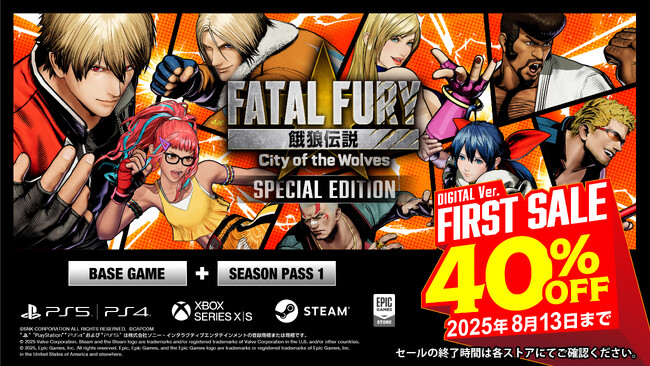 株式会社SNKは、好評発売中の新作対戦格闘ゲーム『餓狼伝説 City of the Wolves』デジタル版のセールを、2025年8月13日まで開催することお知らせします。