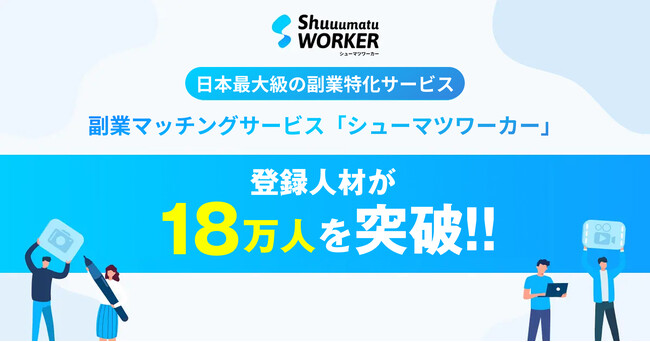 国内最大級の副業人材サービスを提供する株式会社シューマツワーカー(本社:東京都渋谷区、代表:中山 恵太、以下シューマツワーカー)は、紹介可能な副業・フリーランス人材の登録が、18万人を突破したことを発表いたします。