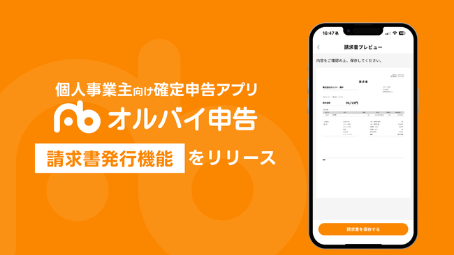 個人事業主・フリーランス向けの確定申告アプリ「オルバイ申告」は、2025年7月に請求書の作成から送付、売上登録までを一括で行える「請求書発行機能」を正式リリースしました。
