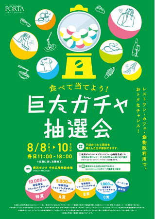物販店舗で使えるショッピングチケットが当たるチャンス!横浜ポルタ「食べて当てよう!巨大ガチャ抽選会」開催!