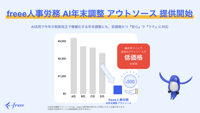 「freee人事労務 AI年末調整アウトソース」本日より提供開始 AI活用で今年の煩雑な年末調整を低価格かつ『安心』で『ラク』に