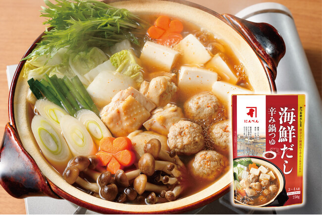 株式会社にんべん(東京都中央区、代表取締役社長 高津伊兵衛)は、「海鮮だし辛み鍋つゆ」を、2025 年9月1日(月)より新発売いたします。国内製造の鰹節を中心に、さば、まぐろ、むろあじ、いわしの5種の魚介の旨みと、辛み成分の強い天鷹唐辛子を合わせた、具材の旨みが引き立つ、ピリッと刺激的な辛さを楽しめる鍋つゆを開発いたしました。