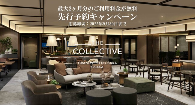 2025年9月30日までに、ザ・コレクティブ グラングリーン大阪のホットデスク、プライベートスイート及びエンタープライズスイートをご成約いただいた場合、ご契約期間に応じて最大2ヶ月分のご利用料金が無料。