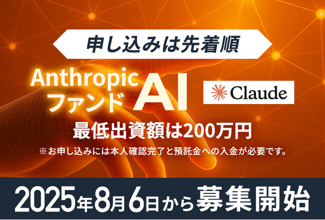 AI言語モデル「Claude」で知られる米ユニコーン企業Anthropic(アンソロピック)への投資を目指すファンドの募集を2025年8月6日(水)より募集開始します。