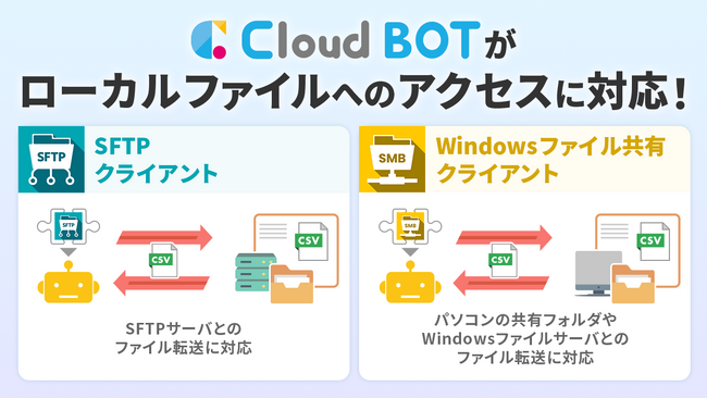 株式会社C-RISE(本社:富山県高岡市、代表取締役:村井)は、クラウド型RPAサービス「クラウドBOT(R)」において、ファイル転送を実現する拡張機能パッケージ「SFTPクライアント」および「Windowsファイル共有クライアント」の提供を開始しました。
