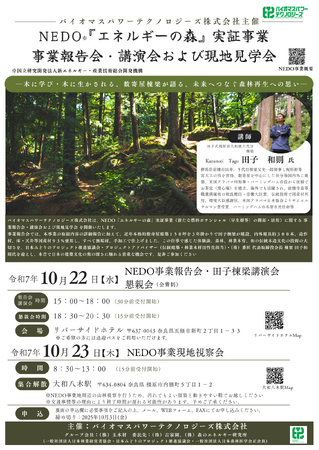 NEDO「エネルギーの森」事業報告会・田子棟梁講演会および現地視察会リーフレット