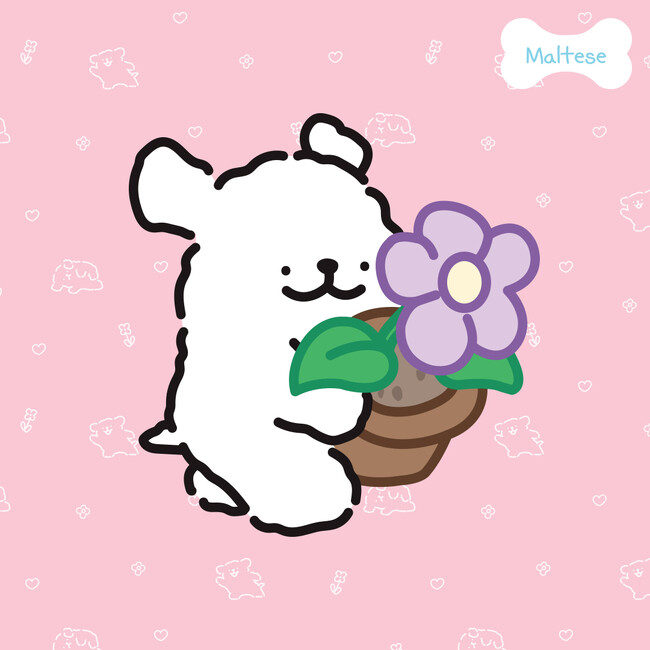 ふわふわの毛並みを太く柔らかな黒い線で描いた、シンプルかつ愛らしいマルチーズ犬のキャラクターで、ちょっぴりわがまま・マイペースながら、なぜかまわりを笑顔にしてしまう、不思議な魅力の持ち主です。