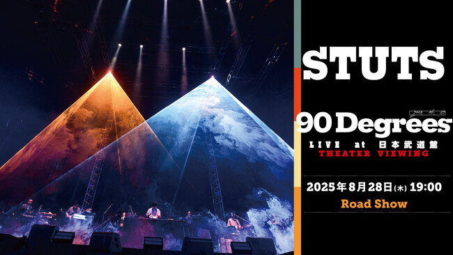 2025年8月28日(木)19:00から、全国の映画館で「STUTS “90 Degrees” LIVE at 日本武道館」を上映します。main venueである丸の内ピカデリーではSTUTS本人によるトークショーが行われ、その模様は「STUTS “90 Degrees” LIVE at 日本武道館」THEATER VIEWINGとして、全国の映画館でライブビューイングされます。