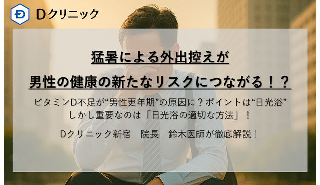 猛暑による外出控えが男性の健康の新たなリスクにつながる!?ビタミンD不足が“男性更年期”の原因に?ポイントは“日光浴” しかし重要なのは「日光浴の適切な方法方」!
