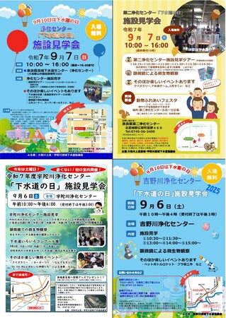 「下水道の日(毎年9月10日)」に関連して、奈良県内4カ所の浄化センターで下水道施設の見学会を開催します!