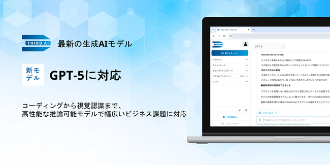 「Third AI 生成AIソリューション」、最新の生成AIモデル「GPT-5」に対応 ~コーディングから視覚認識まで、高性能な推論可能モデルで幅広いビジネス課題に対応~