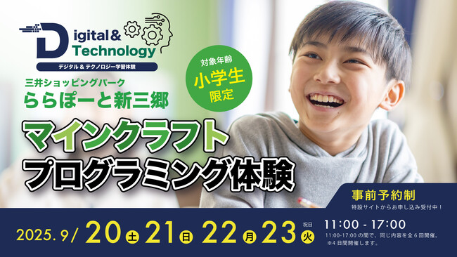 【9月20日(土)~23日(火/祝)】ららぽーと新三郷でデジタル & テクノロジー学習体験会を4日間開催!