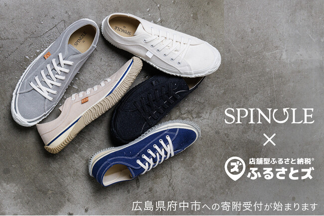 広島県府中市で店舗型ふるさと納税(R)『ふるさとズ』の導入がはじまります。7月24日、ハンドメイドスニーカーブランド「SPINGLE」にて寄附の受付を開始します。