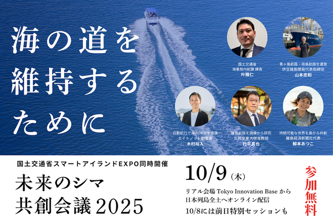 10月9日、認定NPO法人離島経済新聞社(本部:大分県日田市、代表:多和田温子※活動名 鯨本あつこ)は、Tokyo Innovation Base(東京都千代田区丸の内)およびオンライン配信にて「未来のシマ共創会議2025」を開催(参加無料/要登録)。世界6位の広さを誇る海洋エリアに文化的営みが残るよう、離島地域や各界の有識者と共に、意志ある未来を創るアイデアを広く社会へ共有します。