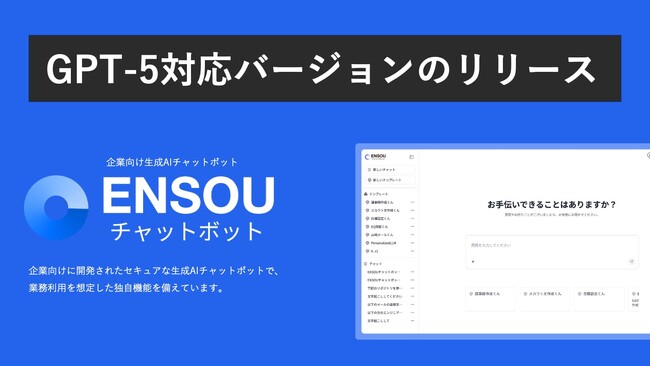 法人向け生成AIチャットボット「ENSOUチャットボット」は最新AIモデル「GPT-5」対応バージョンをリリースしました。
