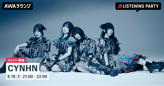 AWA株式会社(本社:東京都港区、代表取締役CEO:冨樫晃己)が運営する、サブスクリプション型(定額制)音楽ストリーミングサービス「AWA(アワ)」は、2025年8月18日(月) 21:00~22:00にて、無料で誰でも参加できるオンライン空間「ラウンジ」で、CYNHNのメンバーが音声とチャットで登場するリスニングパーティーを開催いたします。