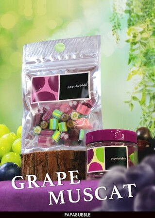 Craft Candy Theater「PAPABUBBLE/パパブブレ」は、夏から秋にかけて旬を迎える「グレープ」と「マスカット」をテーマにした、キャンディ・マシュマロ・グミのラインナップを展開いたします。
