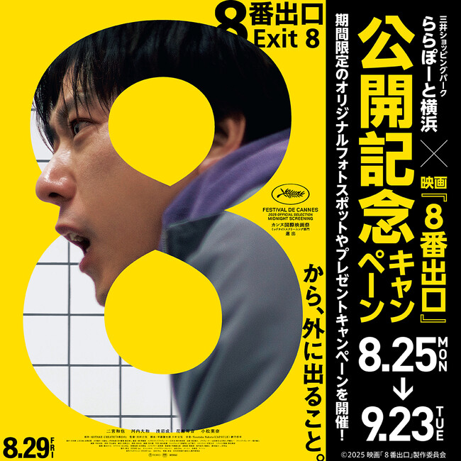 三井不動産商業マネジメント株式会社(本社:東京都中央区、代表取締役社長 大林修)が運営する三井ショッピングパーク ららぽーと横浜は、2025年8月25日(月)~2025年9月23日(火・祝)の期間、2025年8月29日(金)公開の映画『8番出口』とタイアップしたキャンペーンを開催いたします。