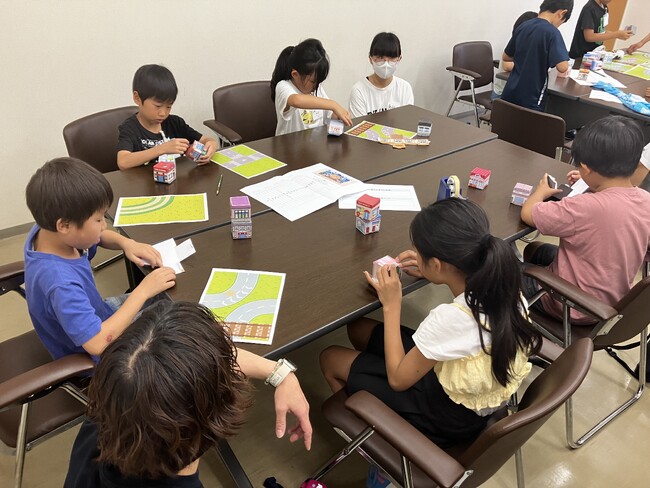 ペーパークラフトで街づくりを行う様子