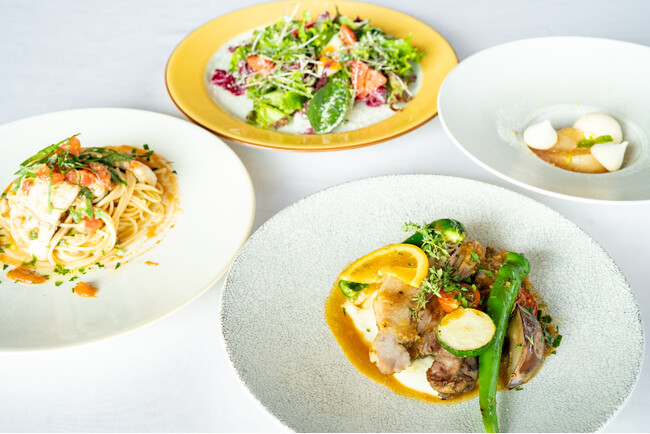 レストランでは夏の特別コースやワインペアリングがスタート、カフェでは季節のフルーツをふんだんに使用したパフェなど目白押し!