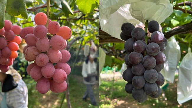 八天堂ぶどう園「クインニーナ(左)藤稔(右)」