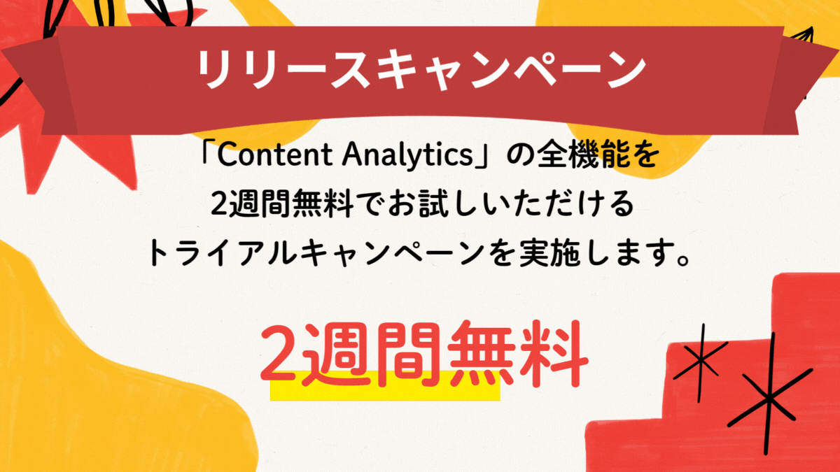 今回の「コンテンツレポートAI」リリースを記念し、本日より「Content Analytics」の全機能を2週間無料でお試しいただけるトライアルキャンペーンを実施します。まるで専属アナリストがいるかのような、AIとのサイト改善体験をぜひこの機会にご体験ください。