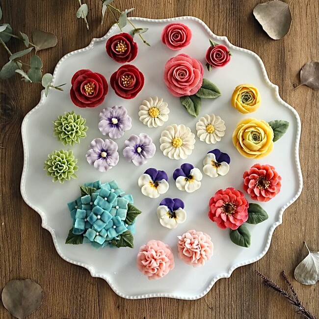 「お花絞り」は、バタークリームや餡子を使って花の形を作るスイーツアート。繊細で華やかな見た目がSNSを中心に話題を呼び、近年では新聞やWebメディアにも多数取り上げられています。