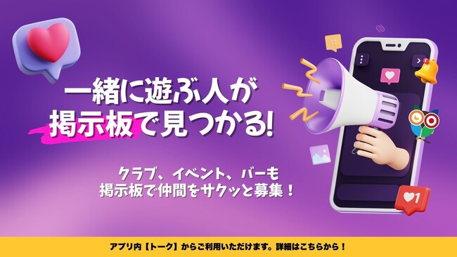 掲示板は、アプリ利用者同士がリアルタイムにつながり、より豊かなナイトライフを共有できる場としてご活用いただけます。