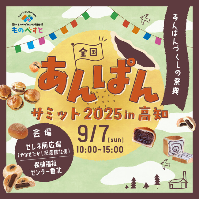 ものべがわエリアでの観光博覧会実行委員会(事務局:一般社団法人 物部川DMO協議会)は、2025年9月7日(日)、あんぱん好きの方必見!あんぱんづくしの祭典「ものべすと 全国あんぱんサミット2025 in 高知」を開催します。「あんぱん」をテーマに、地元と全国をつなぐユニークなイベントで、 “あんぱん”の魅力を多角的に味わえる一日です。本イベントは、高知県物部川流域(南国市・香南市・香美市)のエリアで現在開催中の観光博「ものべすと」の一環として、やなせたかしさんのふるさとでもある高知県香美市で開催します。