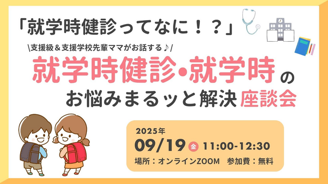 【9/19開催・無料オンライン座談会】「就学時健診ってなに?」支援学級・支援学校入学予定の保護者に向けて、就学時健診・就学時のお悩みを解決する座談会開催