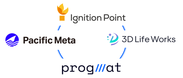 イグニション・ポイント株式会社(代表取締役社長:末宗 喬文、以下イグニション・ポイント)は、Progmat, Inc.(代表取締役 Founder and CEO: 齊藤 達哉、以下Progmat社)、株式会社Pacific Meta(代表取締役社長: 岩崎 翔太、以下Pacific Meta)、3D life Works株式会社(代表取締役社長: 林 和人、以下 3DLW社)と提携し、金融領域における新事業に関する企画・調整・システム/態勢整備・社会実装を一気通貫で支援できる態勢を構築しました。