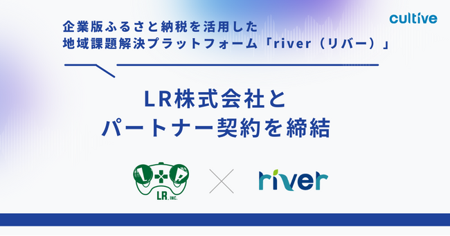 企業版ふるさと納税を活用した地域課題解決プラットフォーム「river(リバー)」を運営する株式会社カルティブ(本社:神奈川県横浜市、代表取締役:池田 清)は、LR株式会社(本社:鹿児島県日置市、代表取締役:末永 祐馬)は業務提携に合意いたしましたので、お知らせします。