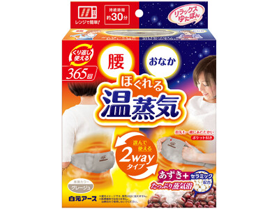 白元アース株式会社(本社:東京都足立区、社長:吉村一人)は、電子レンジで温めてくり返し使える蒸気タイプの保温具『リラックスゆたぽん 腰・おなか2wayホット ほぐれる温蒸気』を8月25日より新発売いたします。