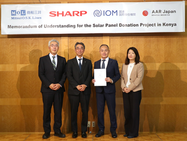 シャープ株式会社およびシャープエネルギーソリューション株式会社(※1)(両社合わせ以下、シャープ)は、ケニア共和国で避難生活を送る人々が暮らす地域支援のため、海運大手の株式会社商船三井(本社:東京都港区 以下、商船三井)ならびに現地で活動する国際移住機関(以下、国連IOM)(※2)と、第9回アフリカ開発会議(TICAD 9)(※3)に合わせて、再生可能エネルギーを活用した基礎的サービス改善に関する基本合意書を締結しました。