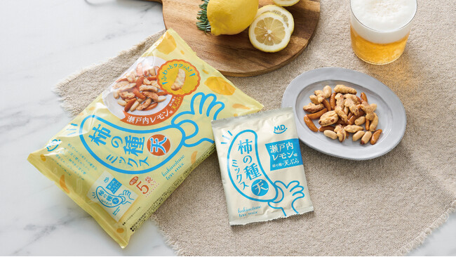 さらに、天ぷらと相性の良い爽やかな瀬戸内レモンの風味で仕上げることで、すっきりした後味のやみつきになる味わいに仕上げました。「柿の種天」、柿の種、ピーナッツの飽きのこない3種の食感に、レモンの酸味と柿の種の塩味がほどよいおつまみとしてお楽しみいただけます。