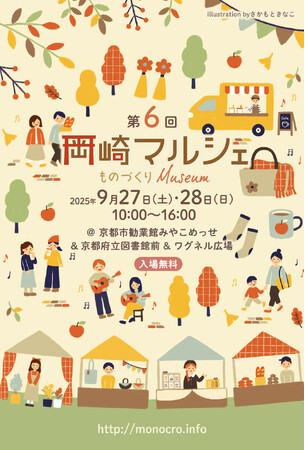 京都市勧業館みやこめっせ(京都市左京区)では、2025年9月27日(土)・28日(日)に「第6回 岡崎マルシェ ~ものづくりMuseum~」を開催します。