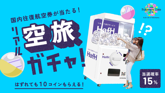 株式会社KabuK Style(本社:東京都中央区、代表取締役:砂田憲治、以下「KabuK Style」)が提供するつみたて旅行サービス「HafH(ハフ)」は、2025年8月23日(土)~24日(日)の2日間、横浜赤レンガ倉庫にて、HafHで過去最大規模となるイベント『HafH Travelers’ Gate 2025』を開催します。そのイベント会場内に「HafHガチャブース」として “リアル空旅ガチャ”を設置します。来場者の方は、その場で会員登録を行うことで、イベント限定の豪華特典を獲得することができます。
