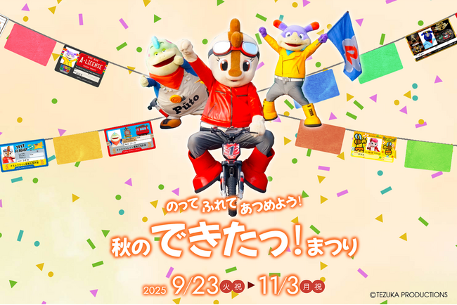 鈴鹿サーキットパーク(三重県鈴鹿市)は、 2025年9月23日(火・祝)~11月3日(月・祝)の期間、「のって ふれて あつめよう!秋のできたっ!まつり」を開催します。期間中は、アトラクションで獲得できるライセンスカードを収集するイベントや秋限定のコチラファミリーとふれあうグリーティングが開催され、挑戦し成長する楽しさを家族みんなで体感いただけます。