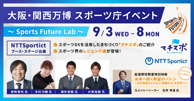 株式会社NTTSportict(大阪市都島区 代表取締役社長 中村正敏、以下 NTTSportict)は、2025年9月3日(水)~8日(月)に大阪・関西万博で開催されるスポーツ庁主催のイベント「Sports Future Lab ~スポーツがつくる未来~」でブースの出展とステージイベントを開催いたします。