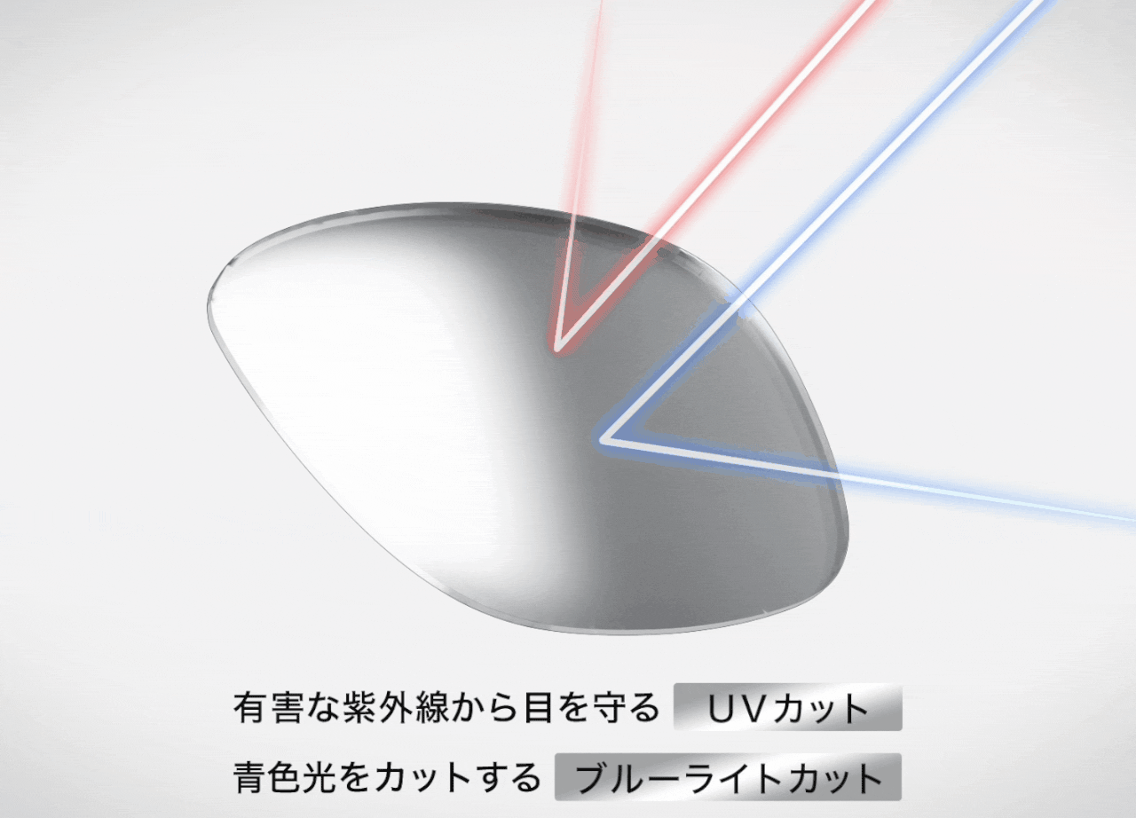 また、傷に強い「ハードコーティング」、紫外線をカットする「UVカット」、青色光をカットする「ブルーライトカット」を施しており長く快適にお使いいただけます。