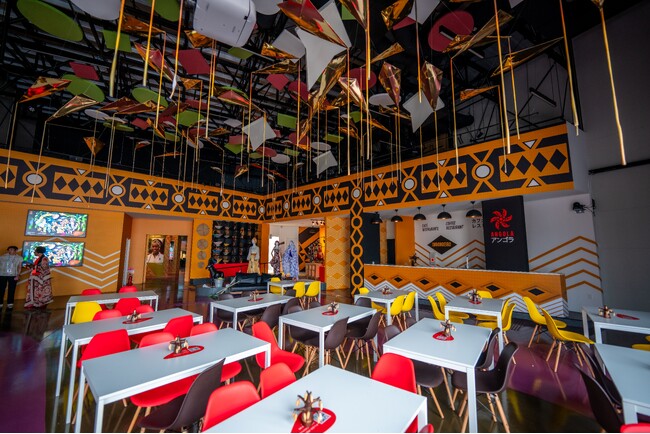 する」存在です。同レストランでは、こうした思想を背景に、どこの家庭でも大切に受け継がれてきたアンゴラ共和国の伝統の味を再現しています。また、パビリオン会場内にはカラフルな工芸品や衣装展示なども設けられており、アンゴラ共和国の文化に触れられる空間が広がっています。