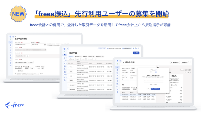 フリー株式会社(本社:東京都品川区、CEO:佐々木大輔、以下「freee」)は、freee会計内で振込指示を完結できるサービス「freee振込」の先行利用ユーザーの募集を開始しました。freee振込とfreee会計を併用することで、登録した取引データを活用してfreee会計上から振込指示が可能です。