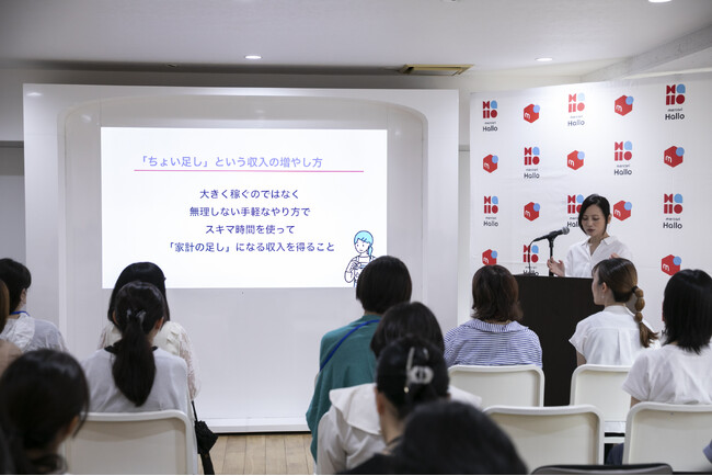 第二部では、スキマバイト未経験のお客さまを対象に、「物価高時代の家計防衛術」をテーマとしたセミナーを開催。丸山氏が講師を務め、節約に偏らない資産管理の考え方や、複数の収入源を持つことの重要性について解説しました。なかでも、長期化する物価高時代においては、楽しみながら無理なく続けられる収入づくりが大切だと述べ、大きく稼ぐのではなく、スキマ時間を上手に活用しながら、家計の足しになる収入を手軽に得る「ちょい足し」という新たな収入アップ法を提案しました。