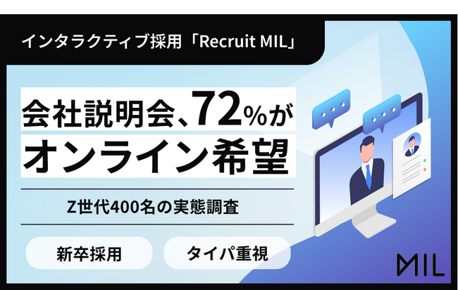 インタラクティブ体験でデジタルコミュニケーションを変革するMIL株式会社(本社:東京都新宿区、代表取締役CEO:光岡 敦)は、就職活動を経験したZ世代(22~25歳)の男女403名を対象に「会社説明会に関する意識調査」を実施しました。本調査から、採用のオンライン化が進む一方で、企業と学生の間に「内容」と「形式」における新たなコミュニケーションギャップが生まれている実態が浮き彫りになりました。
