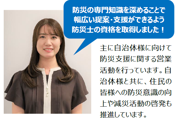 当社は、東日本大震災をきっかけに公助、共助、自助の3つを支援するソリューション、商品・サービスの提供や防災・減災活動の啓発を行っています。